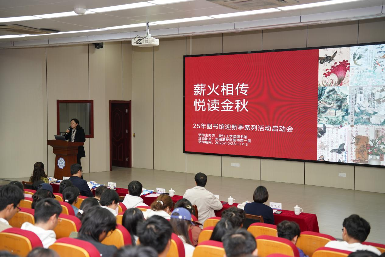 金秋送爽,书香满园。10月28日15时15分,竞技宝app下载安装郑蒲港校区图书馆报告厅内座无虚席,“薪火相传·悦读金秋”2025迎新季系列活动启动会正式拉开帷幕。图书馆馆长陈晓雪、郑蒲港校区管委会副主任陈波、校区学工办副主任孙虎、分团委书记王雨晴及EBSCO安徽省高校用户服务专员张玉兰莅临现场,与300余名新生代表共同见证这场阅读盛宴的开启。
