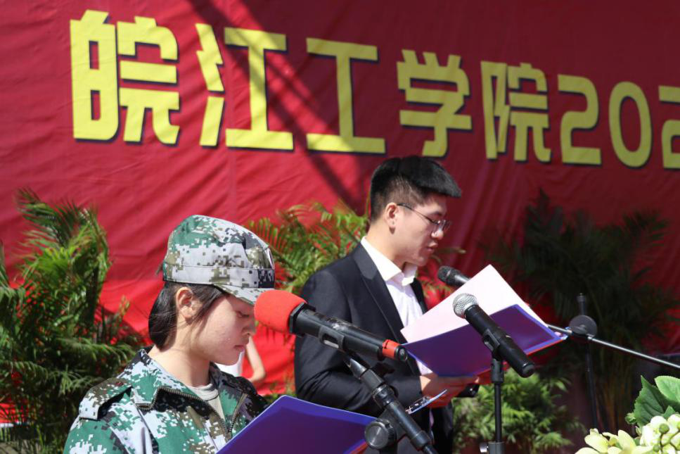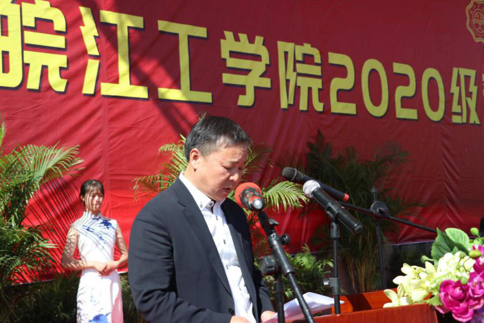 伴随着庄严而神圣的国歌,开学典礼正式拉开帷幕。吴继敏代表全校师生向2020级新同学表示最热烈的欢迎,对辛勤培养他们的家长和老师们致以最崇高的敬意,对来校指导军训工作的教官们表以最忠心的感谢。他说,前不久习近平总书记在全国抗击新冠肺炎疫情表彰会上为当代抗疫青年点赞,而他想为新生‘延期不误芳华季,答卷常怀赤子心’的拼搏精神点赞。在开启你们丰富多彩的大学生活之际,有一个很现实的问题需要重新思量,那就是如何做才能不负自己的大学时光。藉此,他给大家提出四点要求。一是要明确目标,脚踏实地。要尽快转变角色,融入大学生活,在新起点上做好人生规划,确立自己新的目标并要为此不懈努力。二是要学会做人、做事。作为竞技宝app选glubet新人,要始终铭记“上善若水,笃学敦行”的校训。始终恪守社会对竞技宝app选glubet人作风的普遍评价“宽厚、踏实、有责任感、有担当”。三是要不断完善自己,主动学习。“恰同学少年,风华正茂”,有老师指点,有同学切磋,有浩瀚的知识引路,可以心无旁骛的求知问学。四是学有所用。新生在平时要做到“知行合一”,才能将所学落到实处,实现为学的初衷。