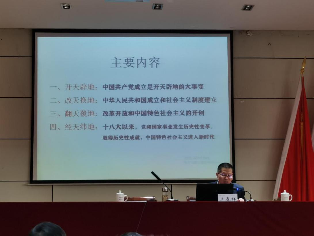 讲座内容脉络清晰,解读了中国共产党诞生是历史的选择、人民的选择,是开天辟地的大事件。中国共产党经历了长征、抗战等28年革命史的风风雨雨,才取得如今的辉煌成就。讲座归纳了自党的十八大以来,党和国家事业发生的历史变革、取得历史性的成就、中国特色社会主义进入新时代。新时代的来临,代表了新方位、新矛盾、新课题,推动了党和国家事业发生了历史性的变革,取得了历史性的成就。在这历史交汇期,我们要趁势而上,开启全面建设社会主义现代化国家新征程。王春祥教授表示,今年正值中国共产党建党100周年,一百年来,党走过了无数风雨,经历了不少挫折。我们要深刻学习党的历史,要坚定不移拥护党的领导,为党和国家发展贡献属于自己的一份力量。