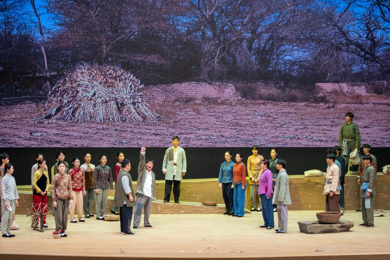 演员们真情流露的演技、独具特色的歌剧唱腔和细腻深邃的舞台表演为师生们带来了一场精美绝伦的视觉盛宴,同学们深受震撼、掌声雷动。来自20级水文专业的任盈盈同学在看完表演后,感动的说到“看完歌剧《向前》,我的内心迟迟不能平复,一场战役以歌剧形式向我们展示,让我们身临其境,感动万分。历史不容遗忘,吾辈更当自强,淮海战役的‘小推车精神’值得我们永远学习和弘扬。”
