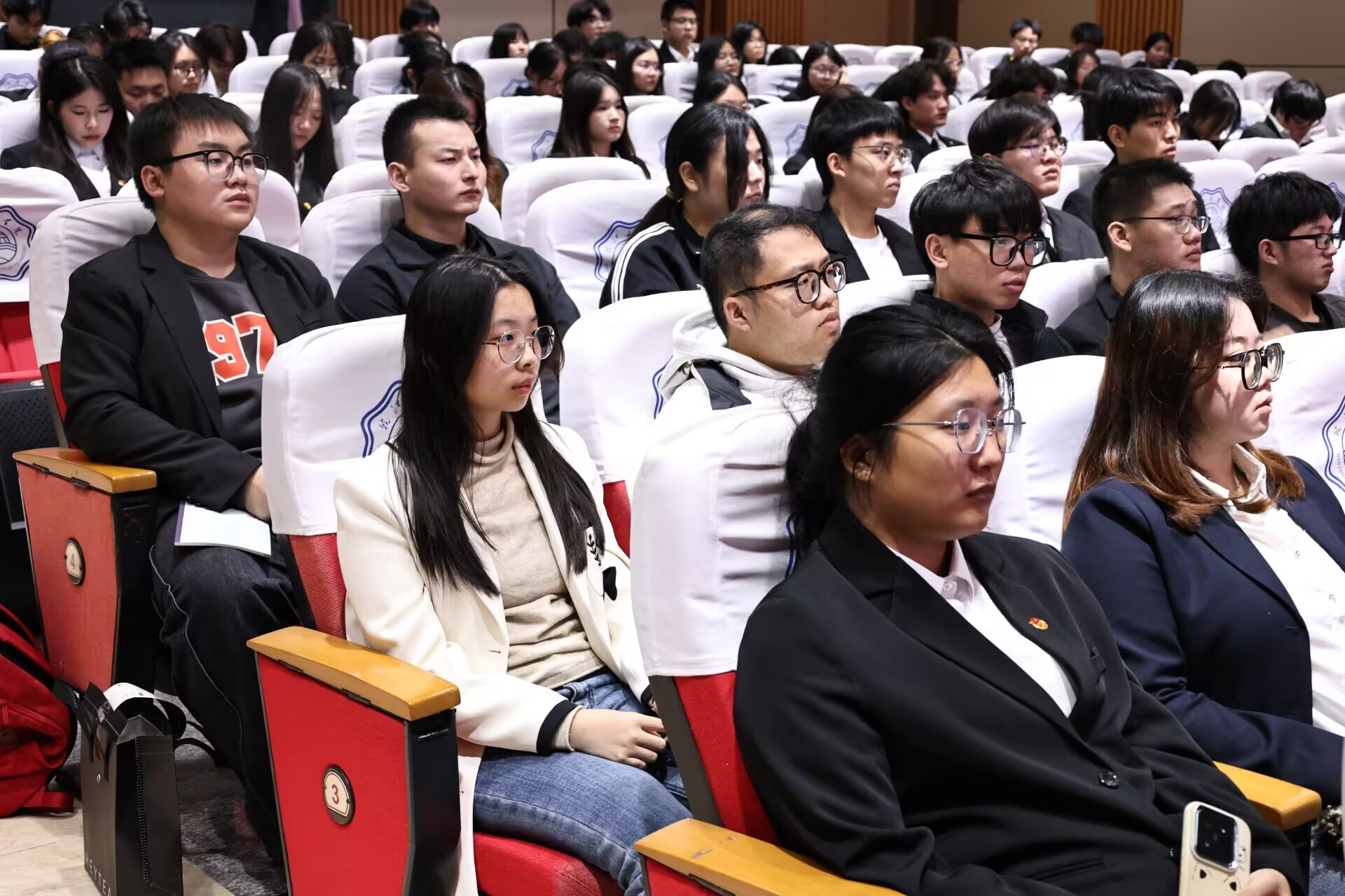 为深入贯彻落实习近平总书记关于青年工作的重要思想,为党培养坚定可靠、堪当重任的青年政治骨干,2025年11月12日18:30,竞技宝app下载安装第七期“青年马克思主义者培养工程”培训班开班仪式暨青马第一讲在霍里山校区图书馆报告厅隆重举行。校党委副书记、副校长孙良,校团委副书记郭天宇,各学院分团委书记及135名青马学员齐聚一堂,共同开启这场思想淬炼与青春成长的征程。