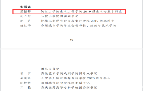 日前,团中央通报表扬了2022年全国大中专学生志愿者暑期 “三下乡”社会实践活动先进集体和个人。我校土木工程学院2019级土木工程专业学生王振铎获评全国“三下乡”社会实践“优秀个人”荣誉称号。