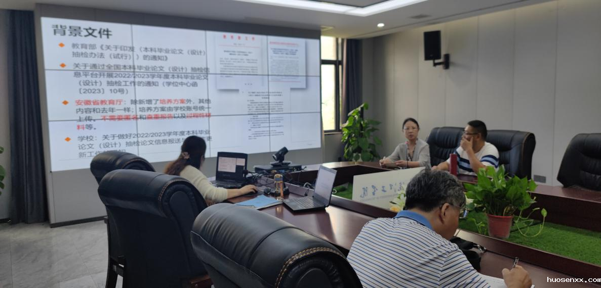 根据教育部学位与研究生教育发展中心《关于通过全国本科毕业论文(设计)抽检信息平台开展2022/2023学年度本科毕业论文(设计)抽检工作的通知》(学位中心函【2023】10号)、安徽省教育厅督导办的相关通知要求,为做好我校2022/2023学年度本科毕业论文(设计)抽检论文信息报送与专家库更新工作,9月4号上午,教务部部长江冰、副部长葛文生、各学院教学副院长(助理)、教学科研办主任及教务部相关负责人在F417召开毕业论文(设计)抽检工作动员会。