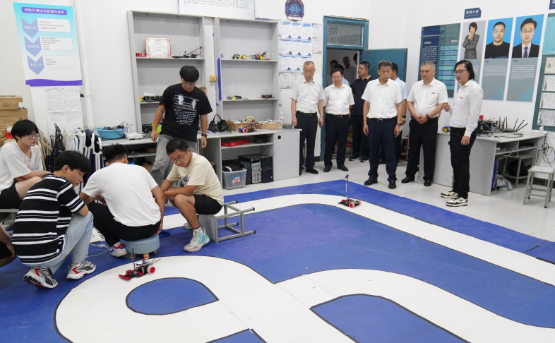 随后,葛斌一行先后参观智能车创新工程实践室、工程创新综合实践室。调研过程中,创新与产业工程师学院院长朱昌平介绍了学校的工程师学院建设进展、教育理念和特色,并表示将一如既往地实行校企“双导师制”,实现产学研深度融合,充分发挥自身优势,不断激发大学生创新工程实践潜能,着力推动学校创新与产业工程人才培养工作高质量发展。