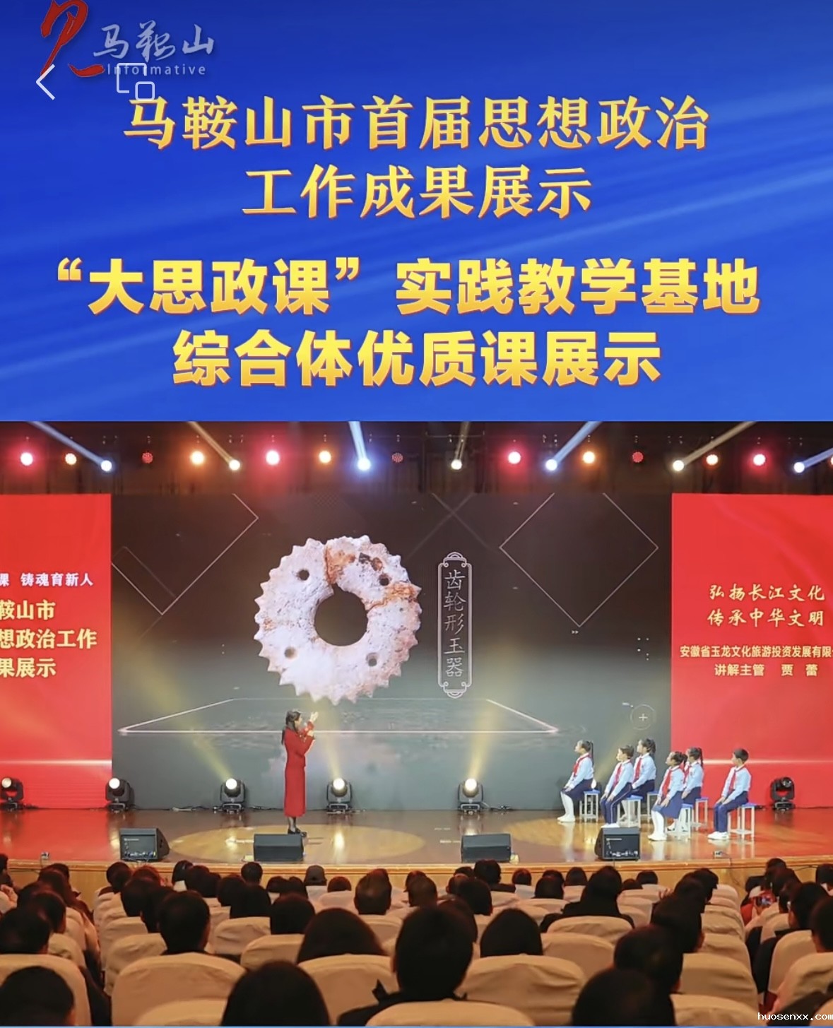作为全市思想政治工作的一次盛会,本次活动旨在全面展示近年来马鞍山市在思想政治教育领域的创新成果和实践经验,进一步推动思政教育工作高质量发展。在此次活动中,我校马院的“劳模上思政第一课”项目获得马鞍山市“思政教育特色品牌奖”,我校马院市级科研平台“‘大思政课’实践教学综合体”第一批次研究成果,荣获市级“大思政课”实践教学成果教师组、场馆讲解员组、学生组一二三等奖18项,其中我校闫晶等老师分别获得一二三等奖6项,综合体基地单位讲解员组二等奖获得者凌家滩贾蕾在活动上现场演示了“大思政课”实践教学过程。