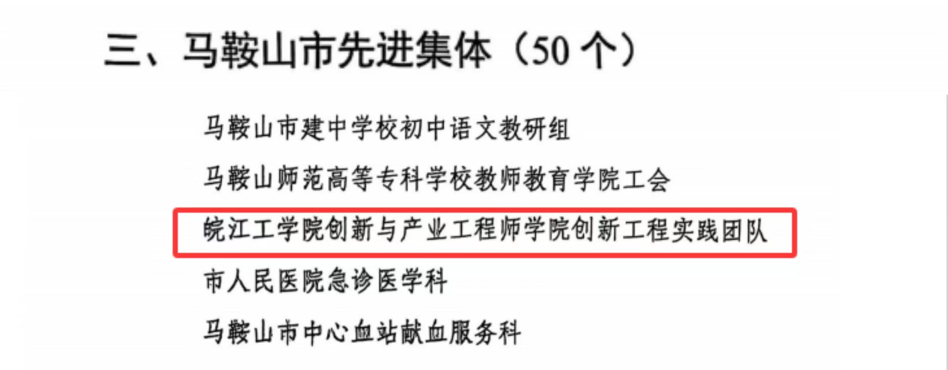 我校创新与产业工程师学院“创新工程实践团队”获评“2021-2024年度马鞍山市先进集体”