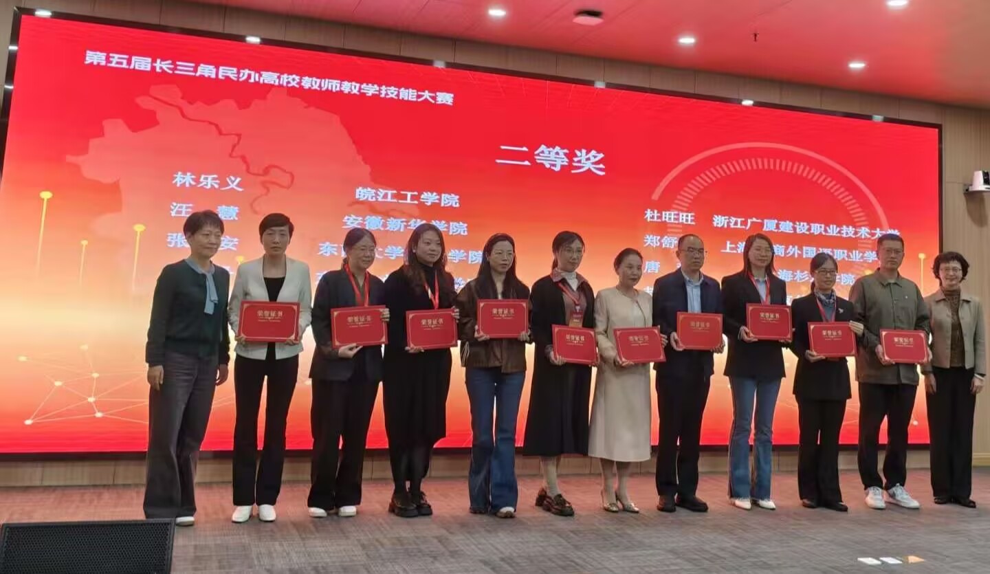 2025年11月8日,第五届长三角民办高校教师教学技能大赛总决赛在上海师范大学圆满落幕。在这场高水平教学竞技中,我校教师凭借扎实的专业功底与出色的教学设计脱颖而出、喜获佳绩 —— 林乐义老师荣获二等奖,熊慧婷老师荣获三等奖,实现了我校在该项赛事中获奖等级与数量的双重突破!