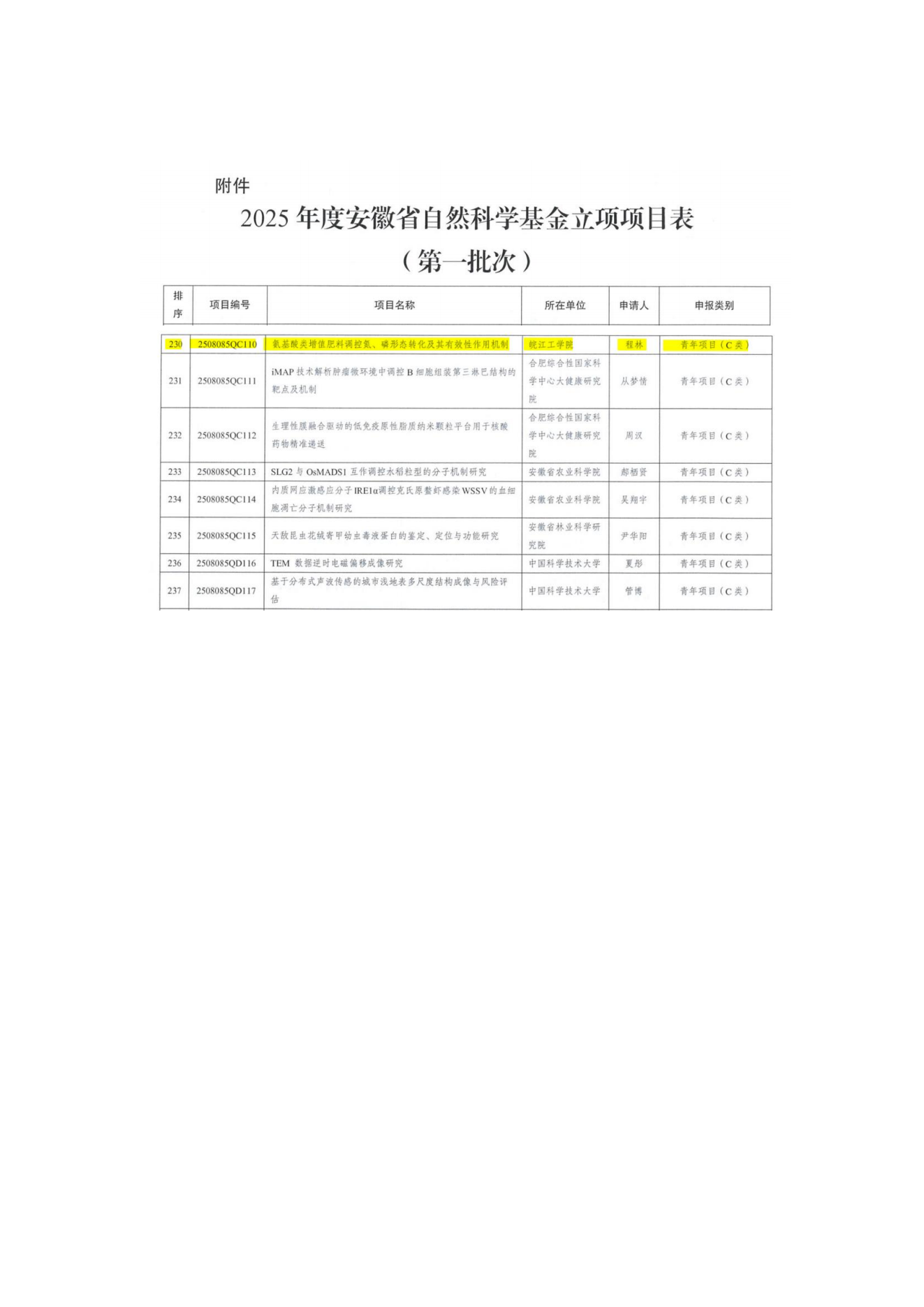 热烈祝贺我校“氨基酸类增值肥料调控氮、磷形态转化及其有效性作用机制”项目获批2025年度安徽省自然科学基金青年项目(C类)资助