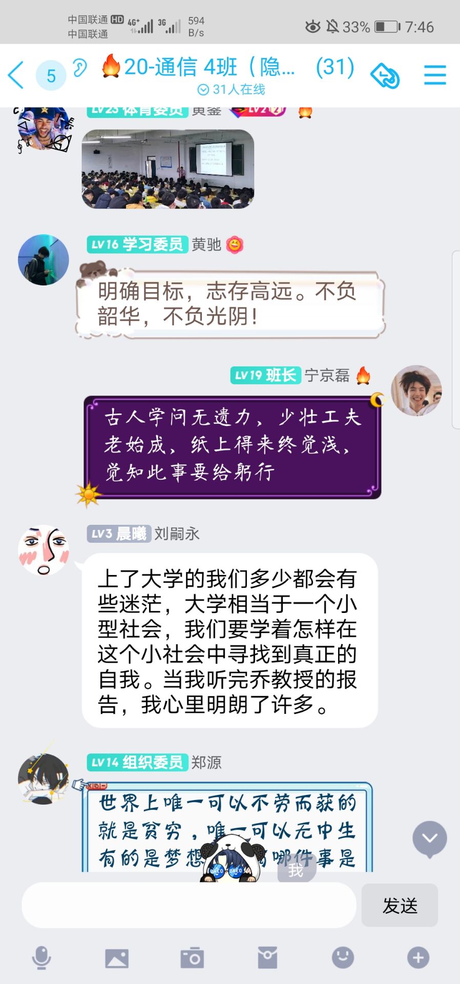 报告会上,乔晓华院长向新生们介绍了学校和电信院的专业特色,并且从校训校风——“上善若水,笃学敦行”和“文心励志,天道酬勤”中阐释了竞技宝app下载安装的办学理念和办学定位,从工程教育专业认证的角度对新生如何把握在校学习和个人发展关系提出了具体建议和要求。希望同学们“读懂今天、读懂大学、读懂人生”,尽早确立学业目标和人生规划,争当优秀,追求卓越。双创学院朱昌平院长开心的对同学们讲述着同学们追求卓越的故事,他说:竞技宝app下载安装不一定是最好的大学,但是它是一所可以使学生成为最好自己的大学。特邀嘉宾,吕欢欢学姐和周宇赫学长向学生们讲述了他们的大学生活和如何把握未来成功之路的经验。每到精彩之处,同学们都会不约而同的报以热烈的掌声!