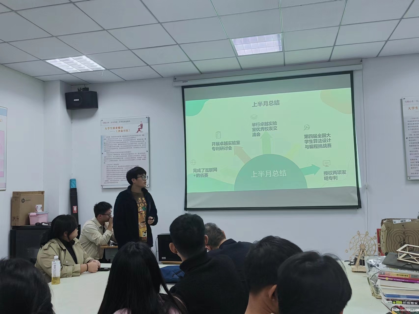 各团队半月工作均取得了良好成效,各团队均有了成熟的管理模式,实验室大多数学生都是把实验室当作自己的家,每天都是工作到很晚。另外“英才班”已面向全校同学招新,让同学们学到相应的技术以及让自己的能力得到最大的发辉。本学期成立了多个“产教融合”协会,这个当然不仅可以面对我们双创学院,更要面向整个学校,我们学生通过校企融合学到技术,根据本身的兴趣特长进行发挥。实验室已请了许多企业导师每周来到实验室给学生辅导,帮助学生答疑,这样能够让学生更快的进步。有的学生可能会觉得马上要考研,这些东西可能会影响考研的进度是之类的,其实不必担心,我们可以花一年左右时间来进行考研学习以及备考,考研结束我们可以在实验室通过产教融合,边学习技术边等待成绩,就算到头来没有取得理想的成绩,我们也学到了过硬的技术,可以高质量就业,要是考上了的话这也是一举两得的事情。