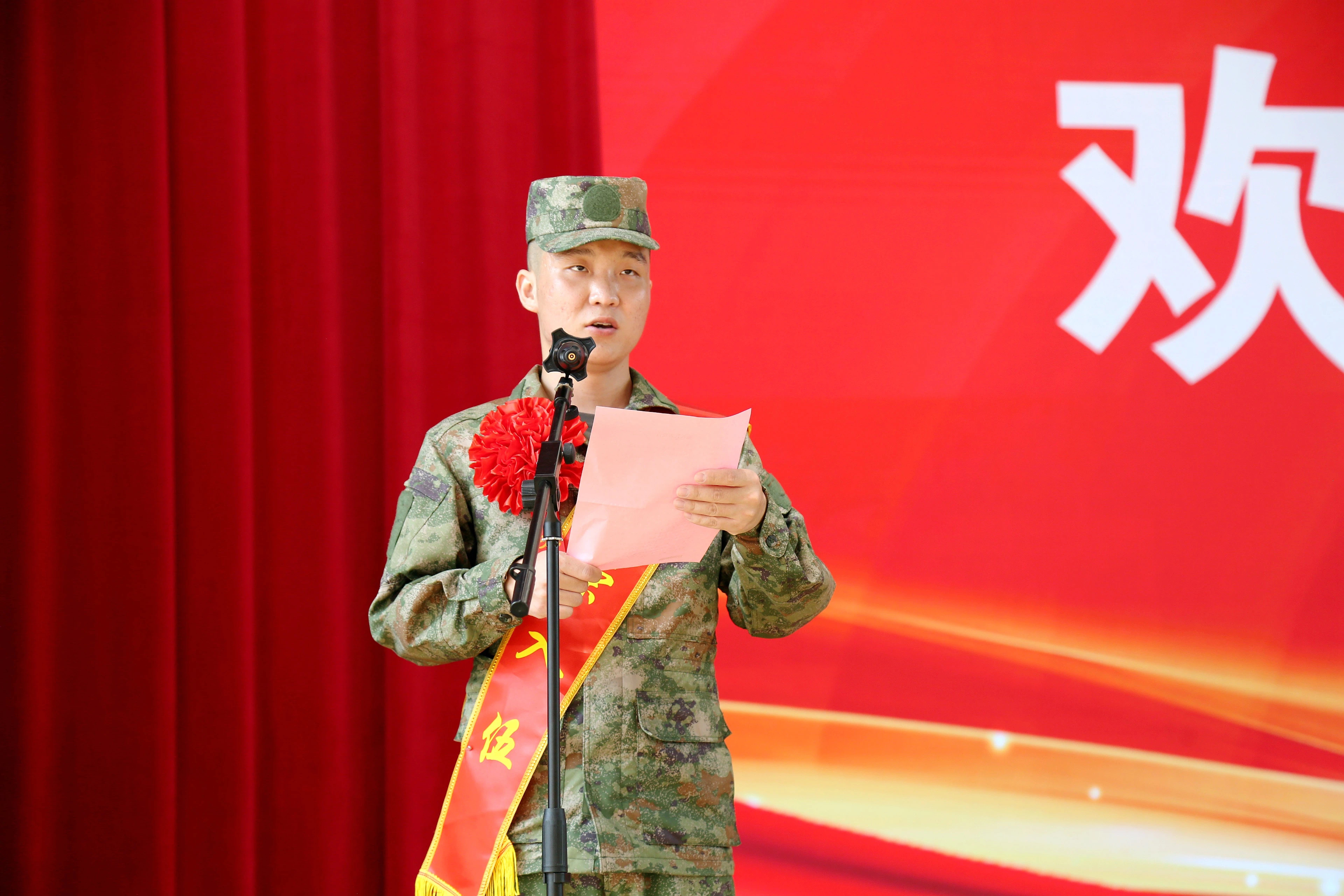 随着激昂高亢、铿锵有力的国歌奏响,新兵欢送会拉开序幕。新兵们身着戎装、胸戴红花、肩披绶带,个个昂首挺胸,意气风发。活动现场,现场宣布新兵入伍命令,新兵代表和新兵、家长和我校征兵工作站代表分别进行了发言。随后,军地领导对新兵表达了衷心的祝贺和殷切的期望,为自己和家乡多争荣誉,为国防和军队现代化贡献力量,早立新功、佳讯频传。入伍新兵纷纷表示,这次活动更加激发了他们参军报国的光荣意识和矢志强军的使命意识,将不负大家的期望,建功军营。