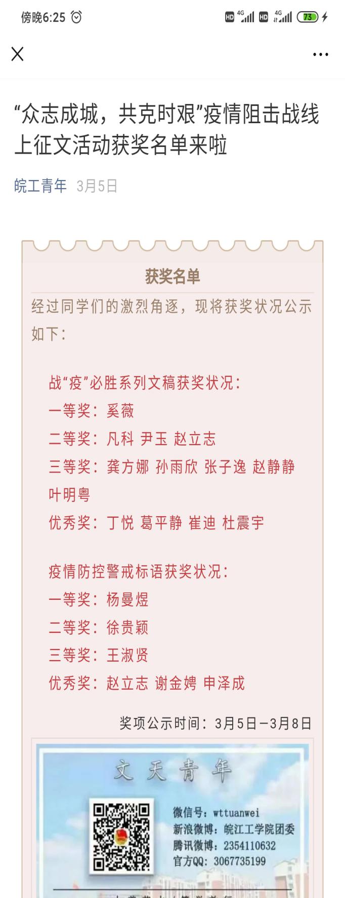 学生以笔为戎,书写疫情下青年一代的责任与担当。活动结束后,校团委共收集到百余篇作品,并筛选部分优秀作品刊登在校团委官方微信公众号“竞技宝app选glubet青年”上进行投票。活动本着公平、公正、公开的原则,共评选出一等奖2名、二等奖4名、三等奖6名、优秀奖7名。