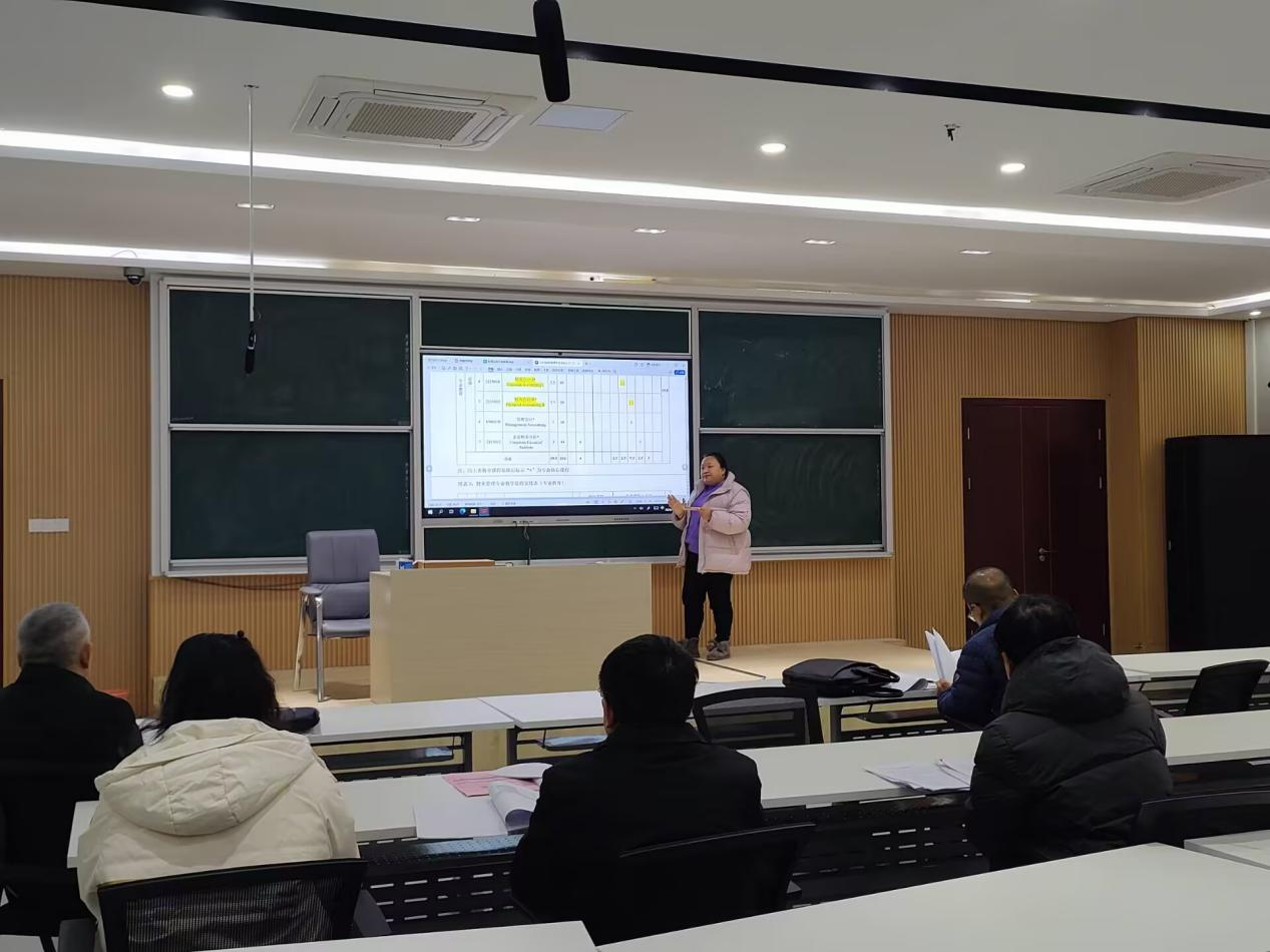 随后,国贸、会计和财管三个教研室就2025版本科人才培养方案展开分组讨论。三位教研室主任分别向各位专家详细介绍了本专业25版人才培养方案,各位专家围绕人才培养方案展开了深入的讨论。论证会上,三位教研室主任首先分别提出现有人才培养方案存在的一些问题,并就培养目标改进、课程设置等方面存在的问题提出相应的改革措施供各位专家讨论。经过热烈的讨论,专家们对我院2025版本科人才培养方案提出以下几点建议:第一,各专业要细化培养目标,增强学时与学分设置的合理性,力求培养适应时代需求的专业人才;第二,抢抓数字化战略机遇,把握学科发展趋势,深化专业交叉融合;第三,适当增加实践类课程,力求培养集实践与理论知识于一体的复合型人才;第四,抢占理论前沿和时代需求,善做课程的“加减法”,适当删减一些与行业发展趋势不相符合的课程,增加一些与专业相关的数据挖掘类课程。
