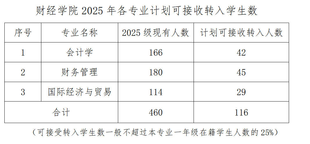 财经学院2025级全日制普通本科学生校内转专业考核办法