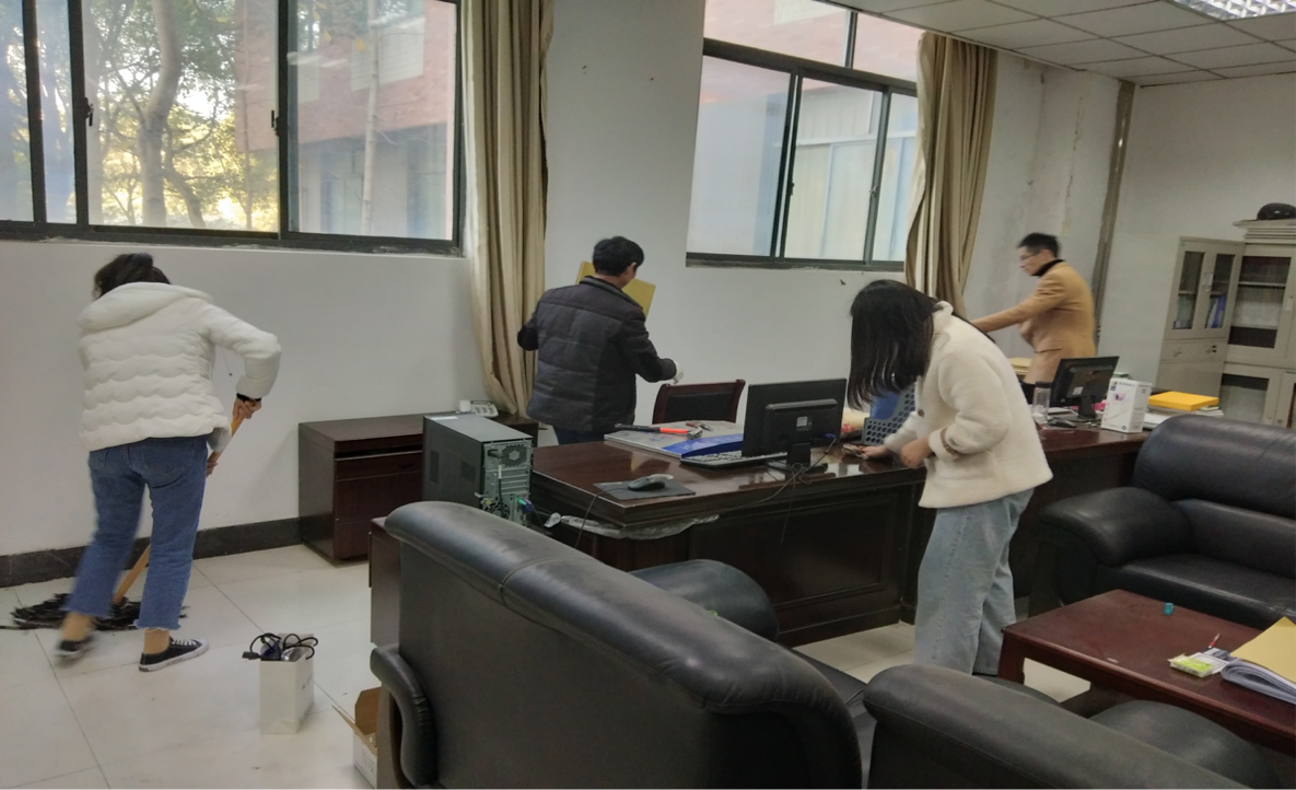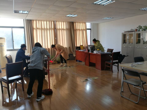活动中,全体学生党支部预备党员积极认真地对老师办公区域进行卫生打扫,收拾整齐桌面,打扫地面一尘不染。