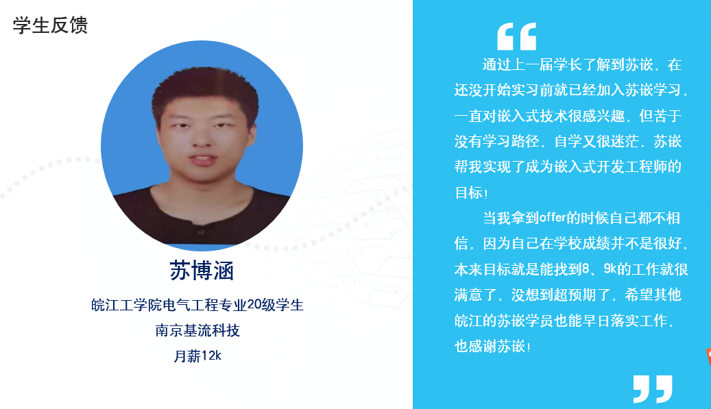 图5电气专业20级学生苏博涵主动参加企业实践提前就业高薪岗位