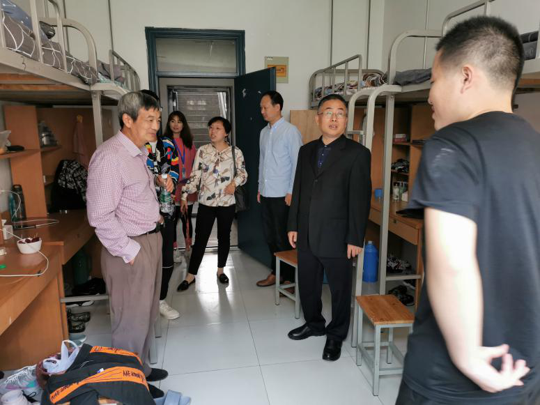下午16时,乔晓华院长和朱昌平教授等一行人在新生辅导员老师的陪同下走访了我院新生宿舍。每到一间宿舍,乔院长和朱教授都对新生同学进行了亲切的问候和交流,询问了住宿是否习惯,有什么困难需要解决。并鼓励新生同学们在大学生活里要学好知识,练好本领。