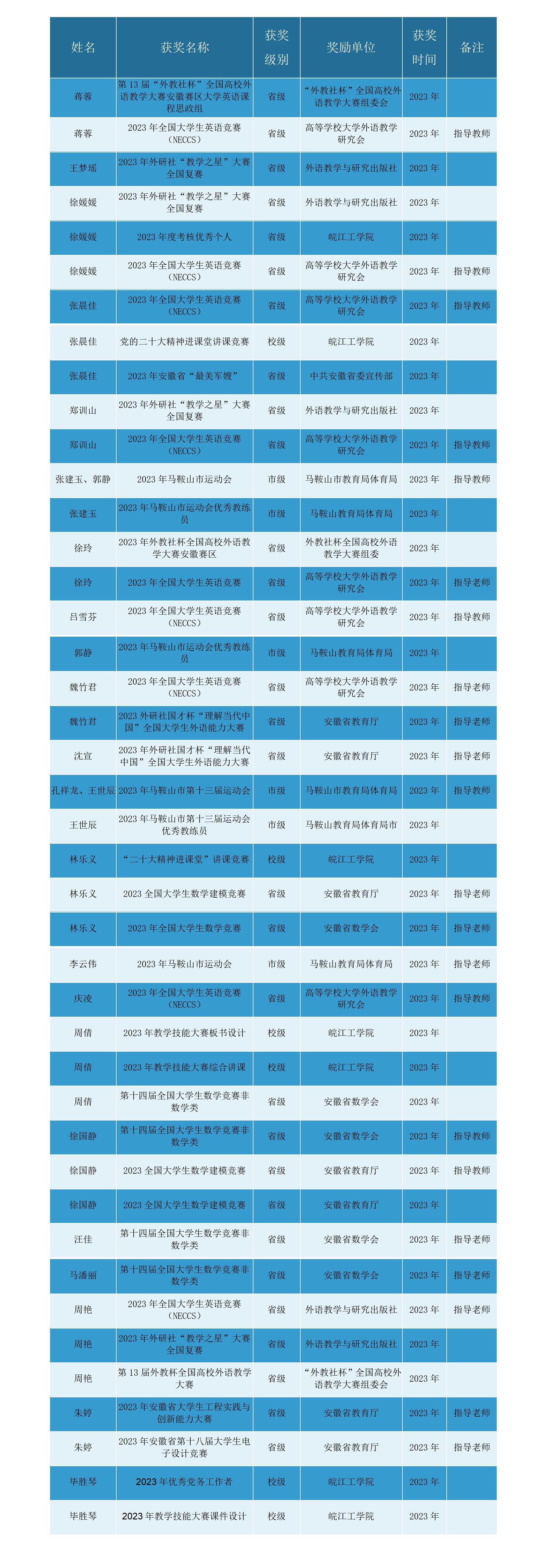 2023年通识教育学院(原基础教学部)教职工获奖情况