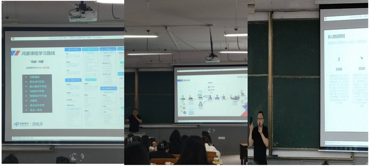 郑老师首先对全球及我国计算机行业的发展趋势进行了深度剖析。郑老师指出,随着人工智能、大数据、云计算等前沿技术的迅猛发展,计算机行业正以前所未有的速度影响着各行各业,创造出大量高价值就业岗位。郑老师着重剖析了鸿蒙开发和嵌入式应用开发两个就业方向,强调作为大三学子,应紧紧把握时代脉搏,积极投身于这个充满机遇与挑战的领域。