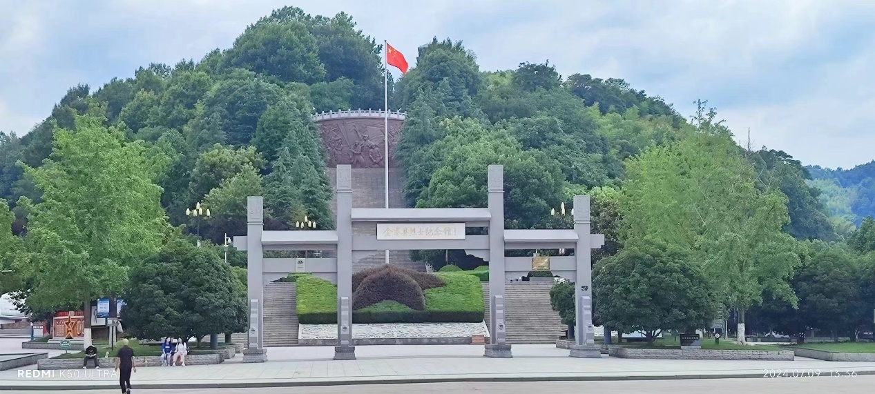 7月10日清晨,实践团队抵达金寨红军广场。这座广场作为“全国爱国主义教育示范基地”和“全国红色旅游经典景区”,承载着丰富的革命历史记忆。团队成员们首先沿着依托自然山体建造的阶梯拾级而上,每一步都仿佛在诉说着那段峥嵘岁月。登上10级、25级和28级台阶,分别寓意着金寨县十万参战的英雄儿女、在金寨组建的中国工农红军第二十五军和在金寨重建的中国工农红军第二十八军。