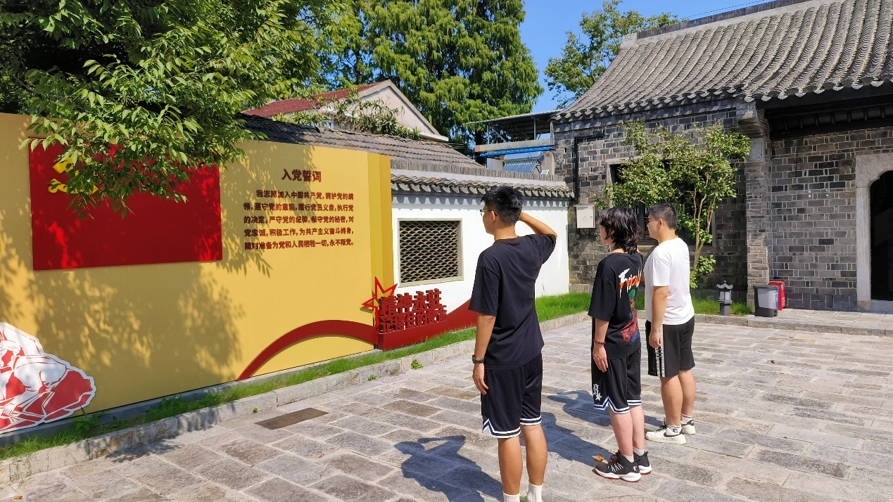 团队的成员张雨,徐舒阳,吴偲远,杨傲在濮塘革命烈士陵园的大门前集合。我们仔细了解了红色烈士陵园的由来和背景。