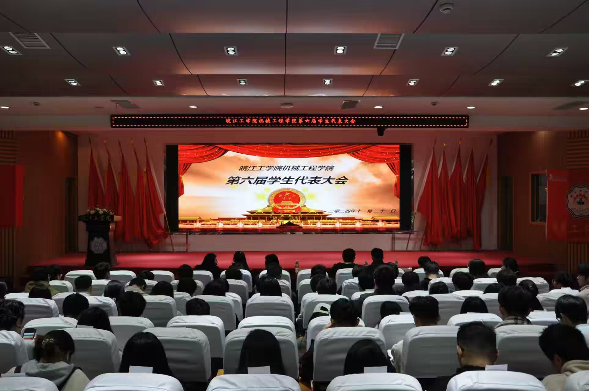 2024年11月21日,竞技宝app下载安装机械工程学院在图书馆报告厅举行第六次学生代表大会。机械工程学院分团委书记汪娟,22级车辆能动汽服辅导员时俊杰,23级车辆能动辅导员王洪超,23级新能源机械辅导员茹雅芳,23级汽服22级机械专升本辅导员王雪梅以及来自各个专业的学生代表齐聚一堂,共同参与这场属于同学们的重要盛会。