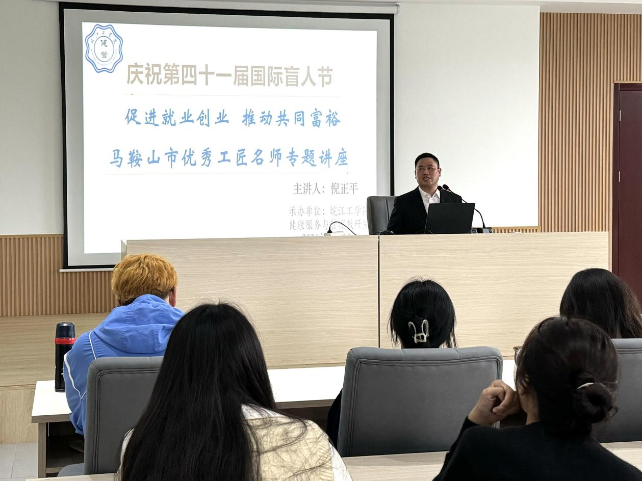 倪正平同志是国家一级保健按摩师,同时也是安徽省盲人按摩学会副会长和马鞍山市盲人协会主席。他凭借卓越的专业技能和不懈的努力,荣获了马鞍山市优秀工匠与名师称号。讲座中,倪正平同志详细介绍了自己如何从一名普通的盲人按摩师,逐步成长为行业内的佼佼者。他强调,专业技能是职业生涯的基石,只有不断学习和提升,才能在激烈的竞争中脱颖而出。同时,他也分享了自己在运营和管理社会诊所过程中的经验和心得,为学生们提供了宝贵的实践指导。