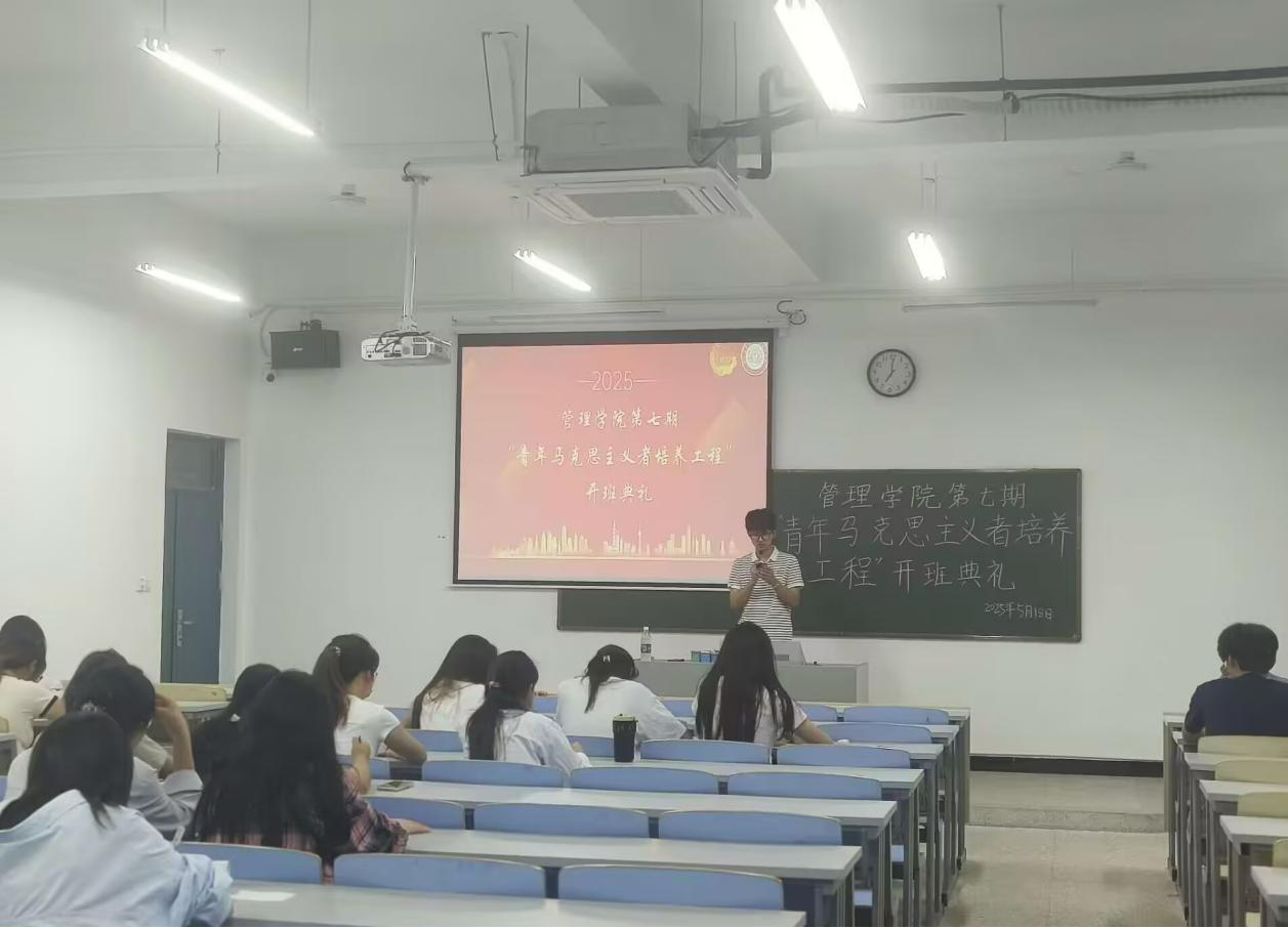 2025年5月18日,竞技宝app下载安装管理学院在郑蒲港校区E402教室隆重举行了第七期“青年马克思主义者培养工程”培训班的开班典礼。本次培训班共选拔50名来自不同专业的优秀学生参与,他们在这里开启了一段深入学习马克思主义理论及其中国化最新成果的旅程。