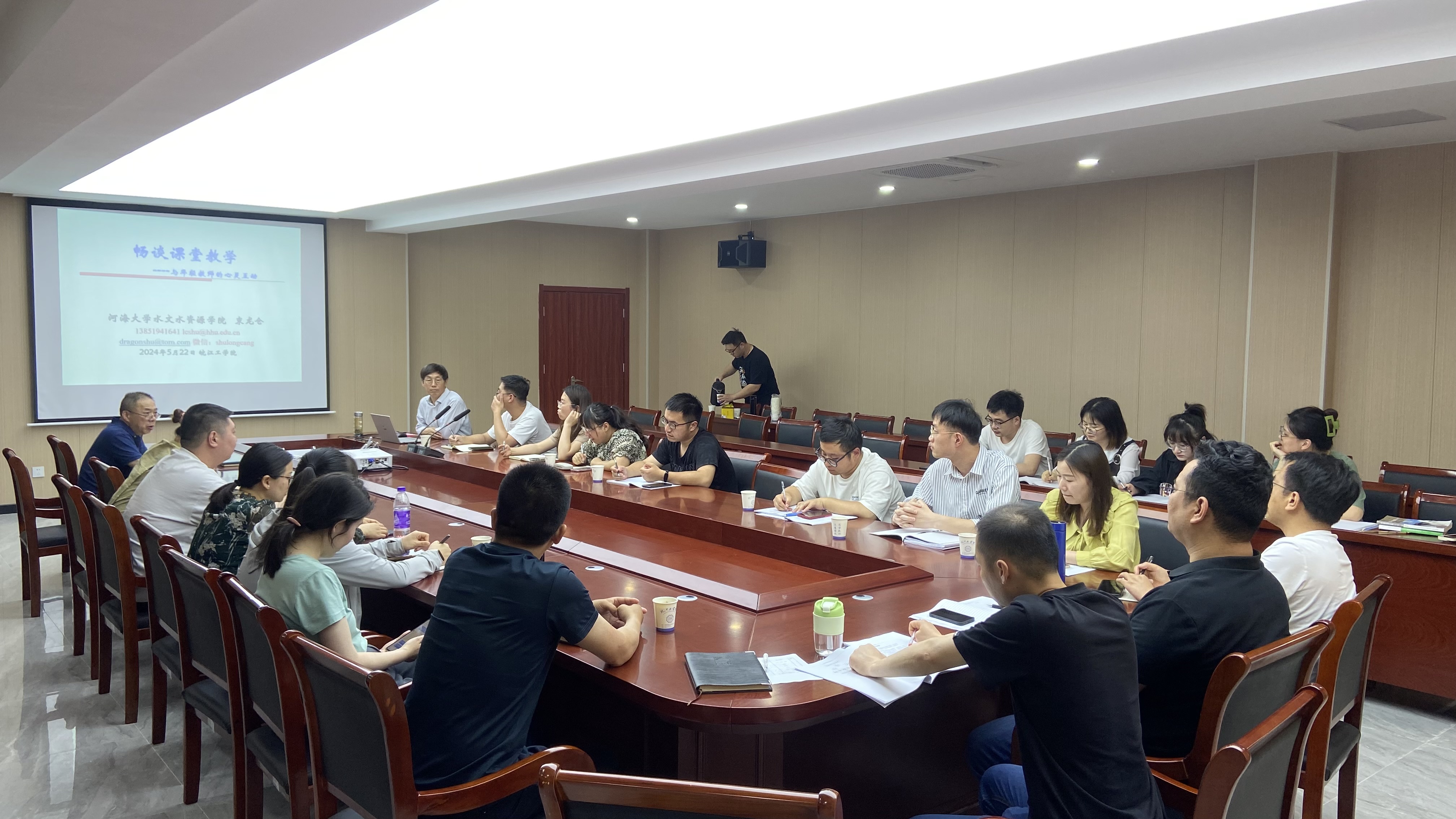 5月22日下午,河海大学水文院束龙仓教授应邀在水木楼西502会议室开展了题为“畅谈课堂教学---与年轻教师的心灵互动”的讲座,我院全体教师现场聆听了讲座。会议由胡明院长主持。