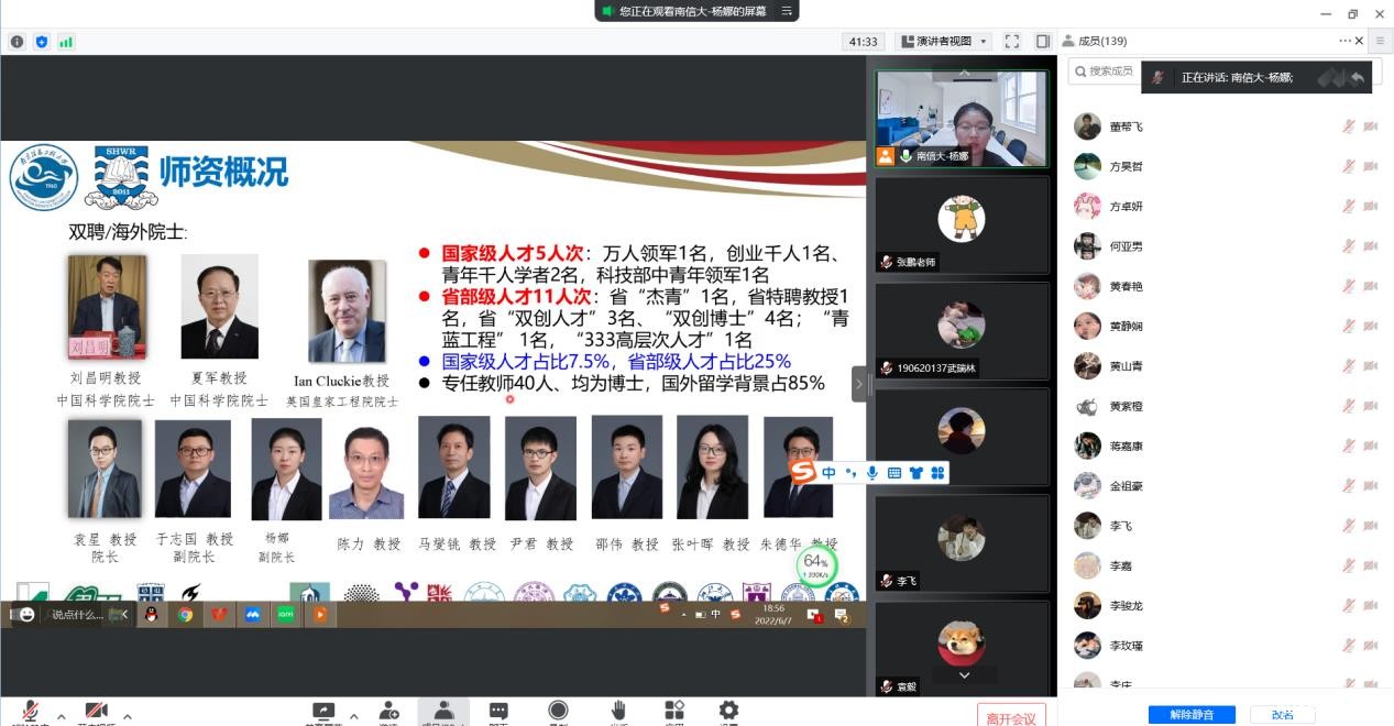 6月7日下午,我院邀请南京信息工程大学水文与水资源学院副院长杨娜教授在线为学生开展了考研辅导讲座,讲座由水利工程学院院长助理张鹏主持。