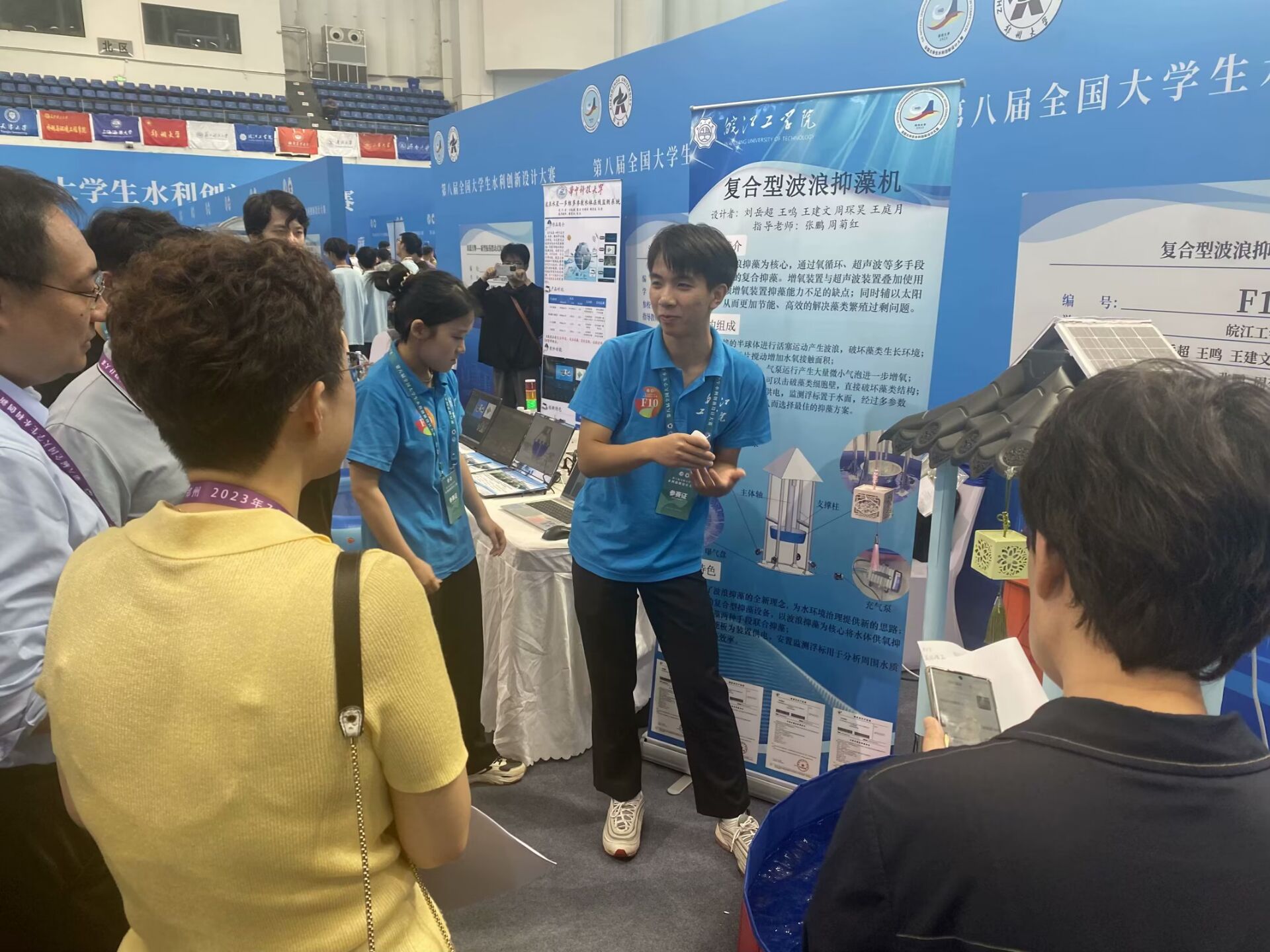 经过实物展示与两轮现场答辩环节,我校共有1项作品获得全国一等奖,1项作品获得全国二等奖。其中,在张鹏老师和周菊红老师的指导下,我校水利工程学院参赛队伍刘岳超等五人共同设计参赛作品《复合型波浪抑藻机》获得了水利创新大赛全国一等奖的佳绩;同时由张鹏老师和杨雅师老师指导的刘彦等五名同学共同设计的《浮浪轻工—基于机械整流式的智能摆式波浪能发电装置》也荣获全国二等奖的好成绩。