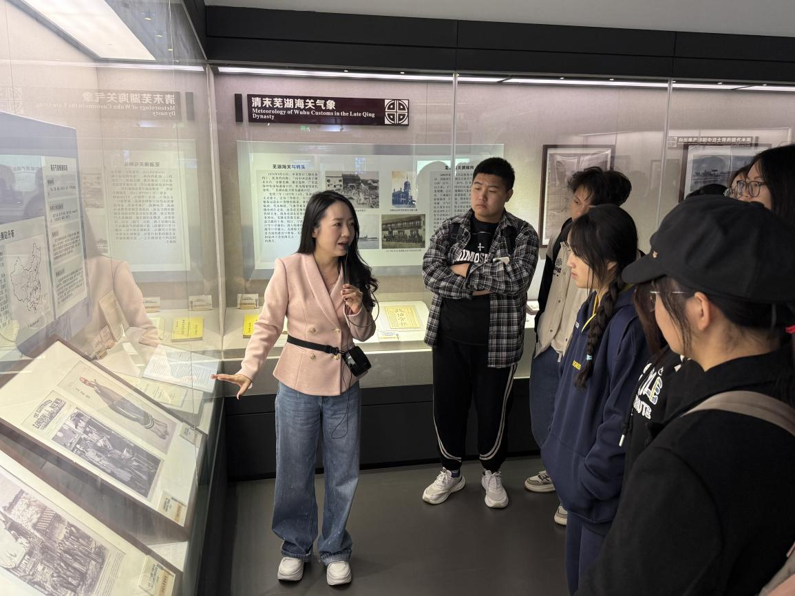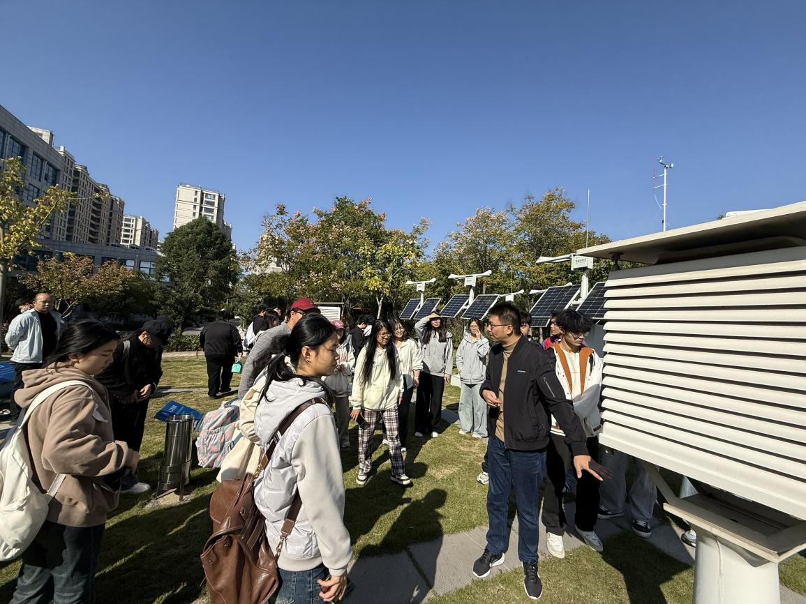10月30日,实习团队走进安徽省气象博物馆。在室外展区,指导教师结合气象监测仪器实物,详细讲解了气温、降水、风速、气压等气象要素的监测原理与操作方法。同学们通过近距离观摩学习,深化了对气象数据采集与应用的认知。