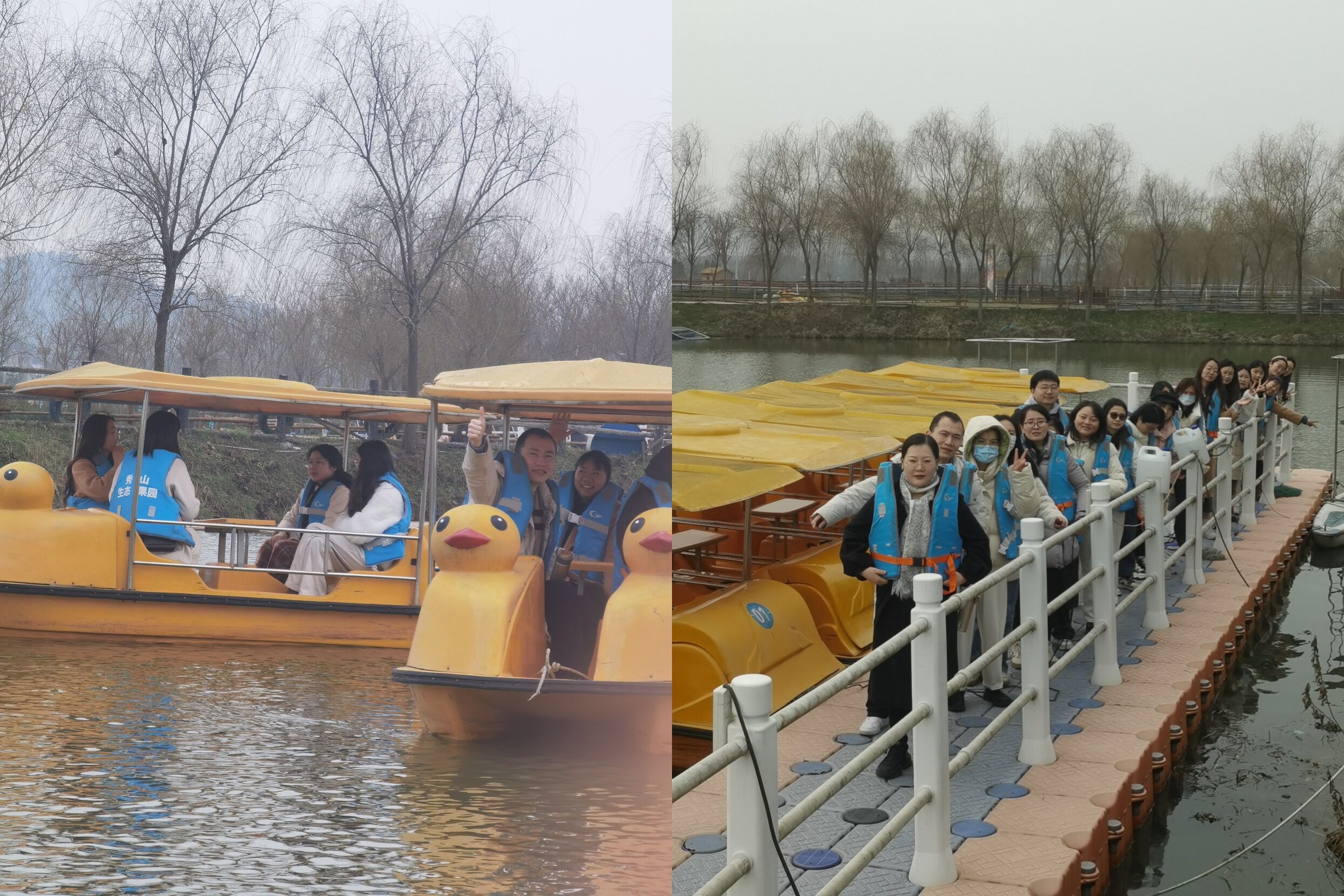 活动当天,伴随着一路的欢声笑语,大家来到了活动目的地。大家三五成群,呼吸着清新的空气,感受着初春的阳光,踏青、游船、打卡、拍照,将这大好春光尽收眼底。中午时分,在乡村大锅灶前大家摩拳擦掌,忙的不亦乐乎,在袅袅炊烟中共同劳动,烹饪佳肴,将一份份美味传递到大家手中,充分享受了“团结协作,共享美食”的乐趣。