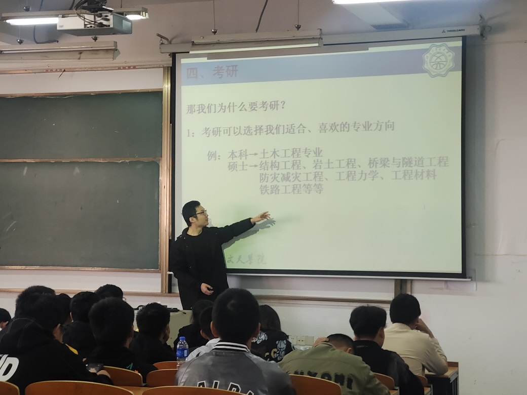 最后,刘老师结合河海大学、合工大等大学的土木工程特色诚恳的给与同学们关于考研的的学习建议,使同学们对接下来四年的学习有了充足的劲头。刘老师还亲切地留下了自己的联系方式,以便解答同学们学习上的问题。