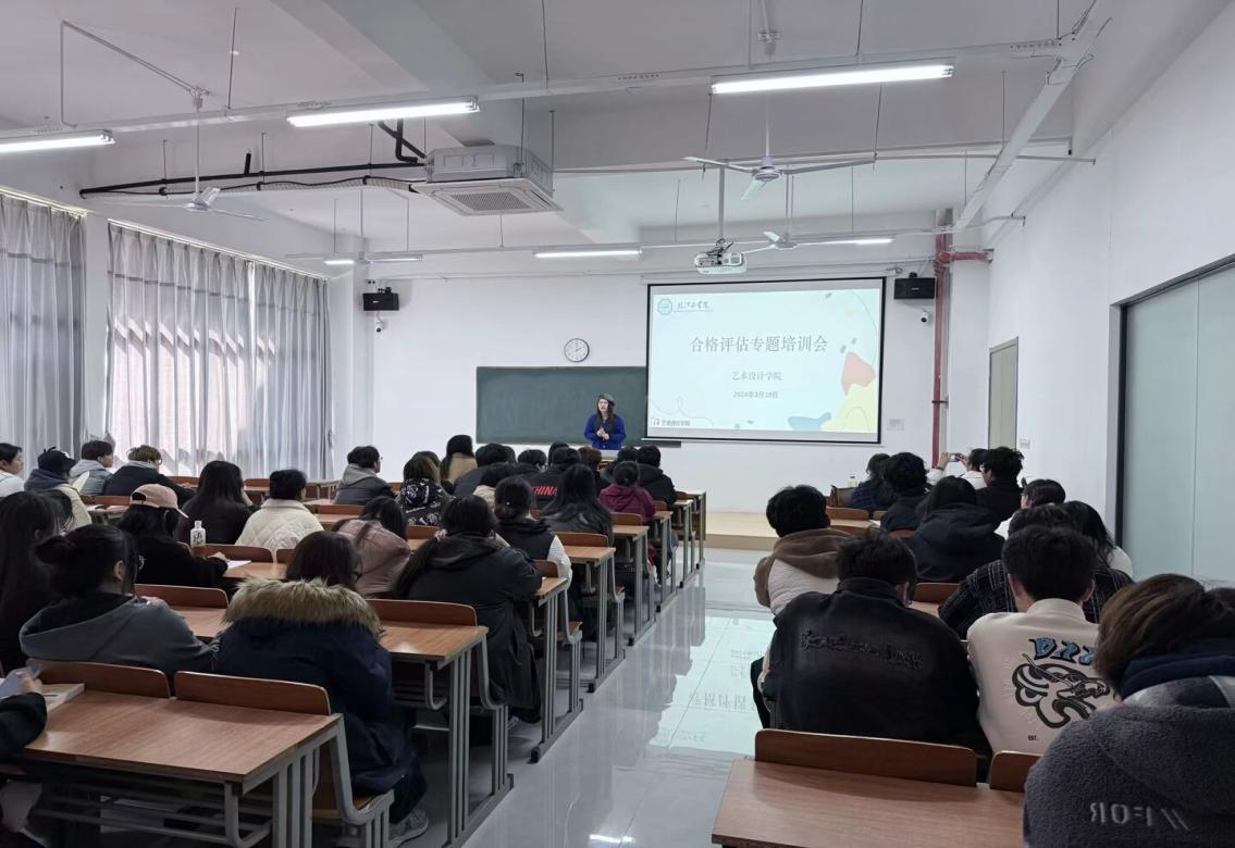 为更好地迎接学校本科教学合格评估,让学生积极参与到合格评估行动当中,3月18日至19日,艺术设计学院在郑蒲港校区先后开展了两场合格评估专题学生培训会。